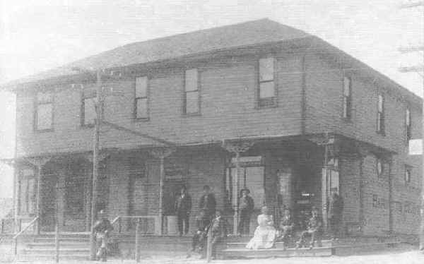 The southwest corner of Main Street (Milford Road) and Railroad Street was home to several businesses over the years. In March, 1873, the Roscoe Brothers built a combined store and hotel on the site. This first "Merchants Hotel" catered to the needs of traveling salesmen, stockmen and produce buyers, while the store also served as the Clyde post office. Both the store and hotel were later acquired and operated by Lincoln C. Johnson. On March 15, 1894, however, a fire originating in the cellar of the store completely destroyed the entire complex. As reported by the Milford Times for March 17, 1894, "A desperate attempt was made to save something from the post office, but with the exception of the blank money orders and postal notes, everything was lost, $60 of Uncle Sam's money included." The damage was estimated at $11,000.00, of which only $5,000.00 was insured. Undaunted, Johnson built a new "Merchants Hotel" one block south, on the southwest corner of Railroad and Bishop Streets. He also built a new store on the original site, which thereafter passed to C. E. Everts and later Charles Barnett. This photo, looking southwest from the Milford Road-Railroad Street intersection, shows the replacement building as it appeared during Barnett's ownership, circa 1915.